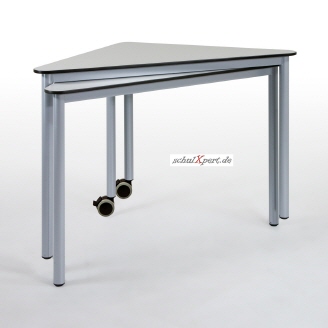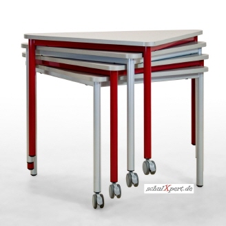 Tische mit 90° und mit 60° Stellung. Die Tische sind stapelbar und können mit einer Rolle versehen werden. Funktionalität und Flexibilität steht im Vordergrund.